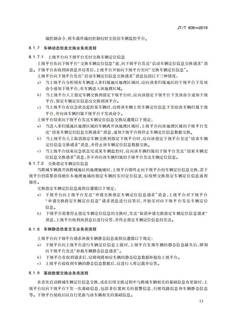 JTT809-2019 道路運輸車輛衛星定位系統(平臺數據交換)