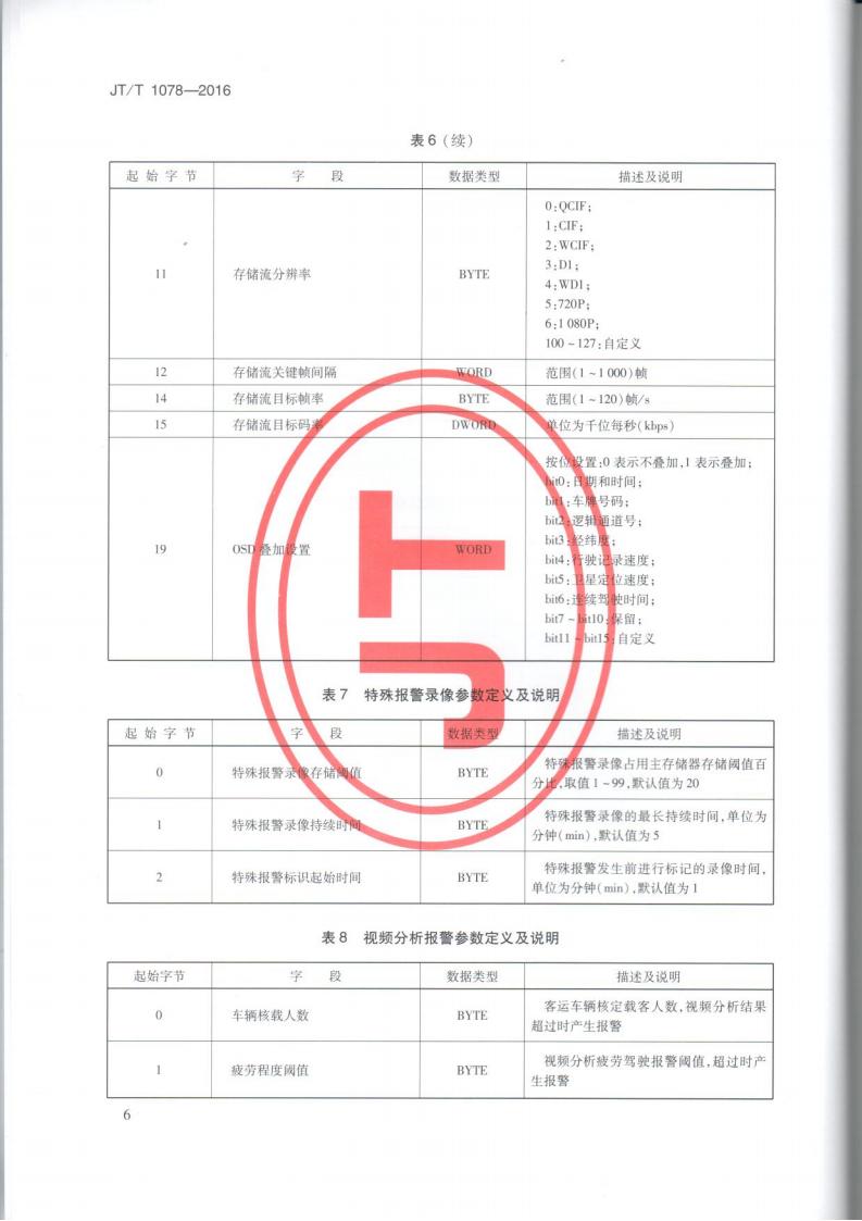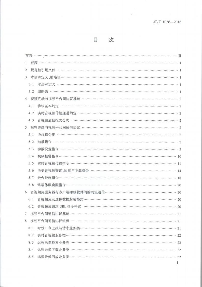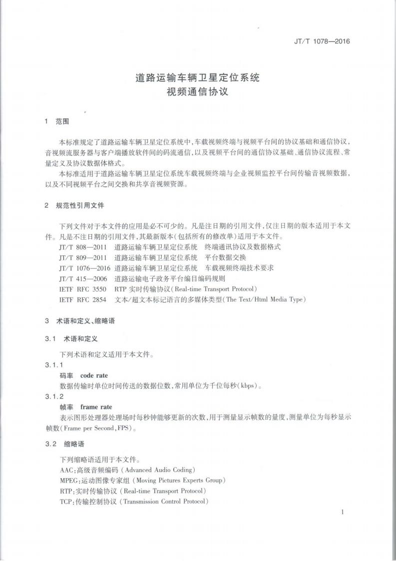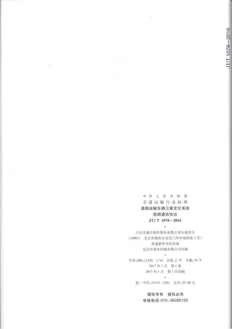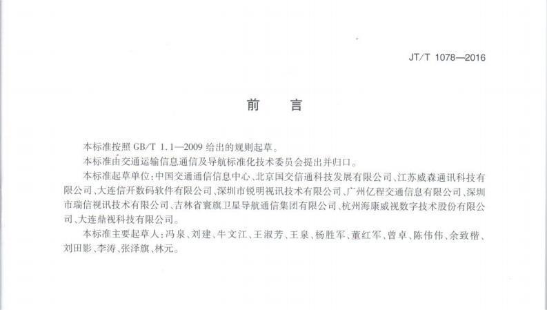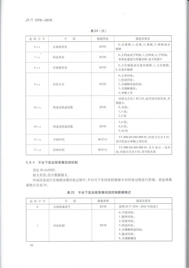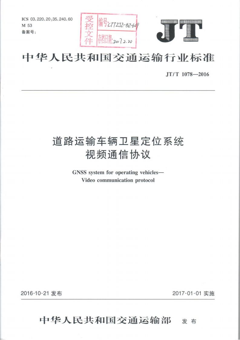 JTT 1078-2016 道路運輸車輛衛星定位系統車載視頻(通信協議)