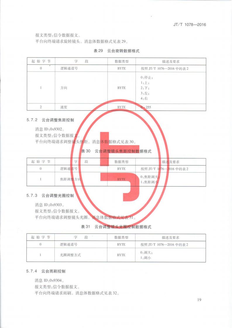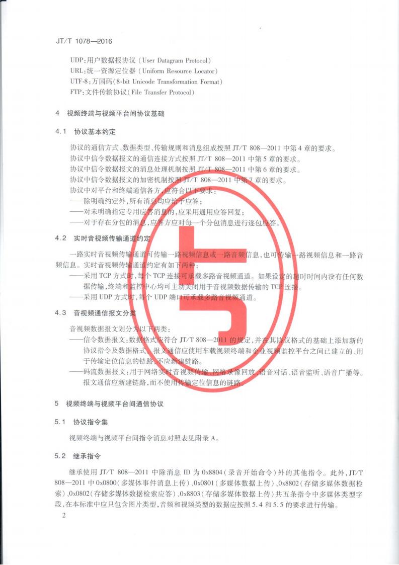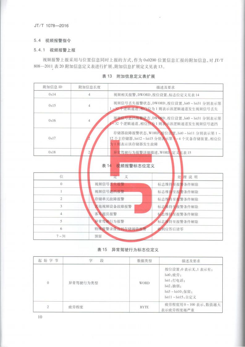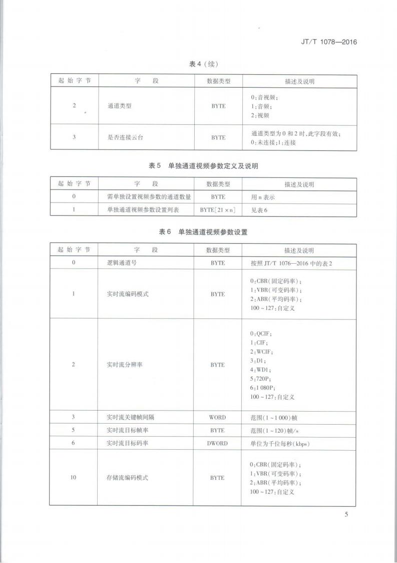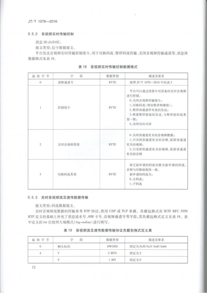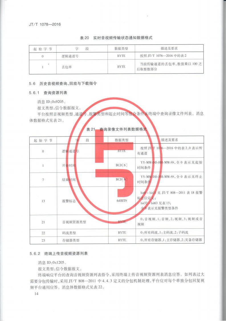 JTT 1078-2016 道路運輸車輛衛星定位系統車載視頻(通信協議)