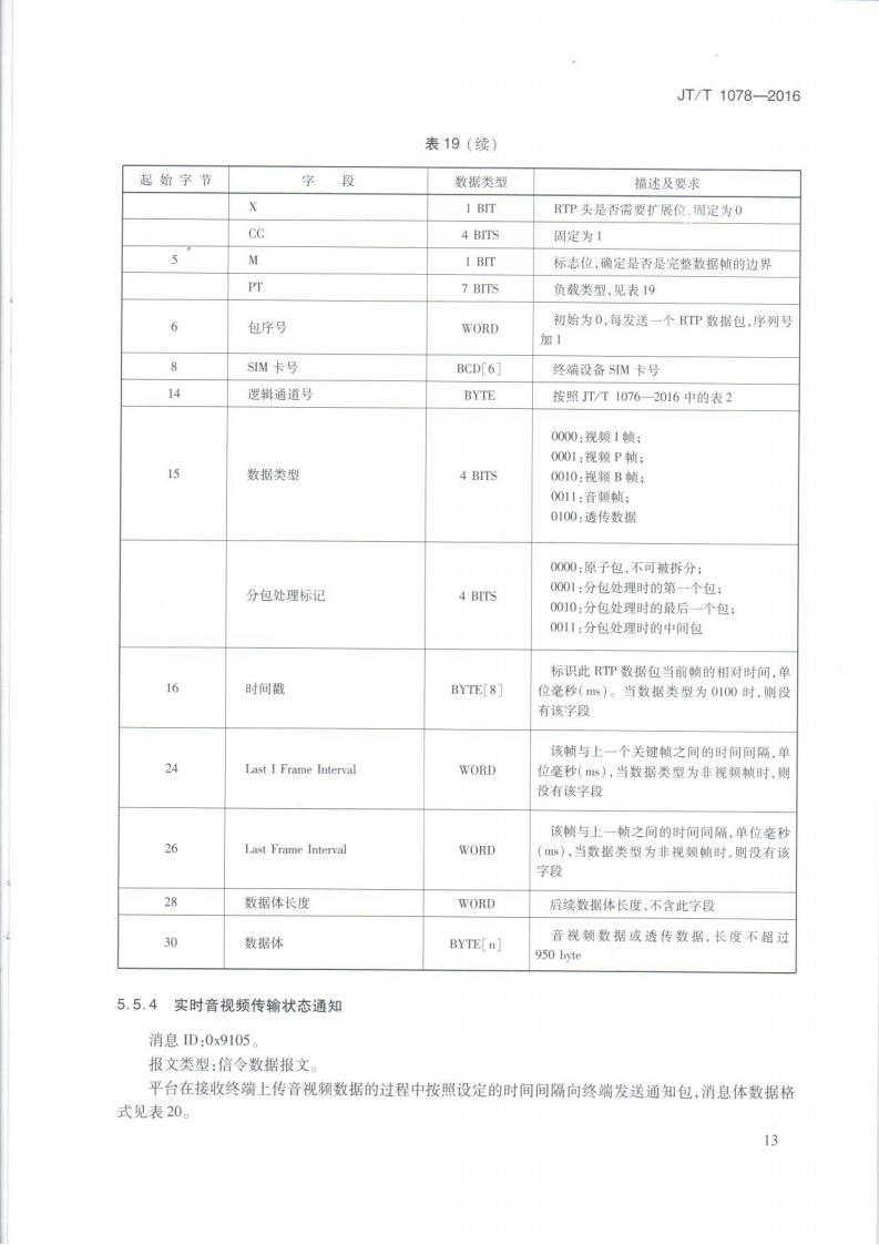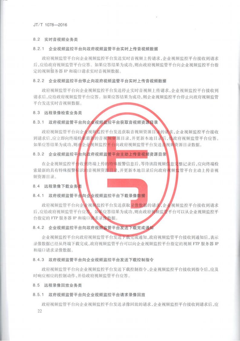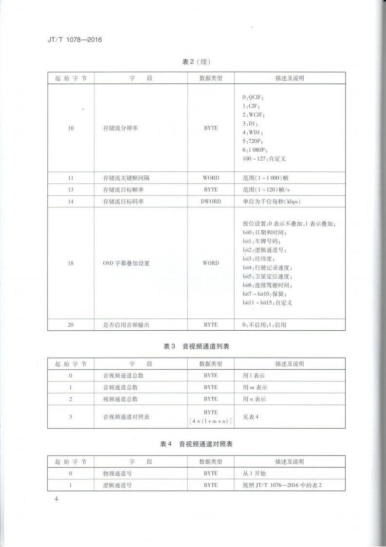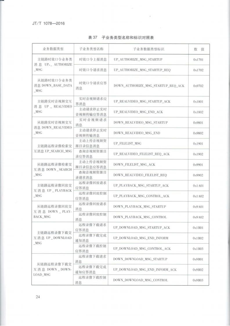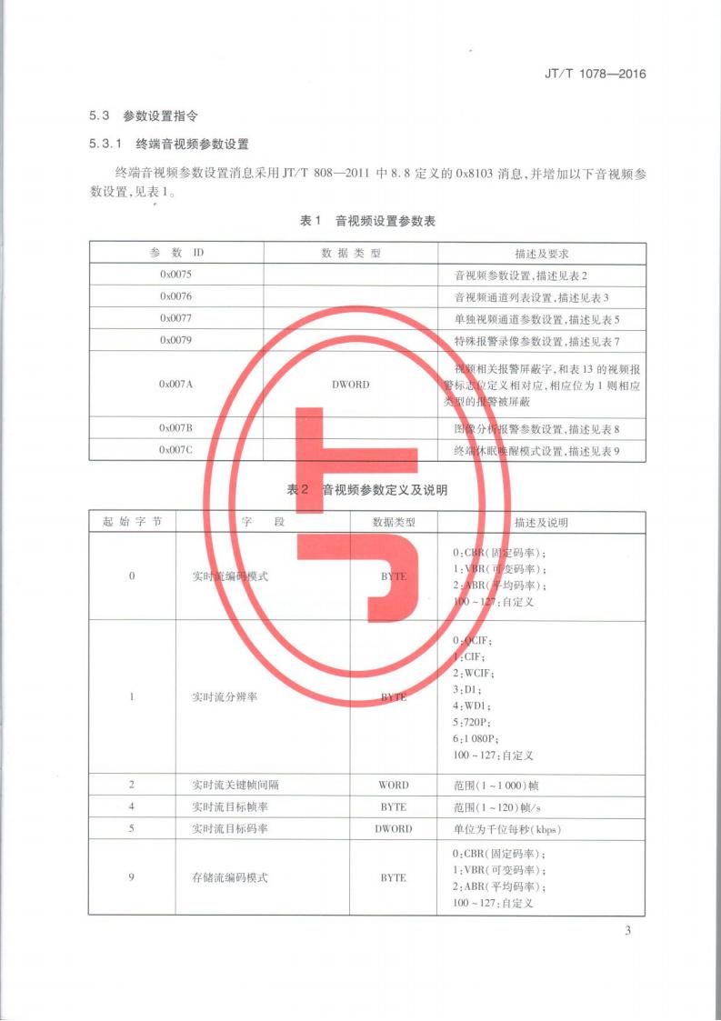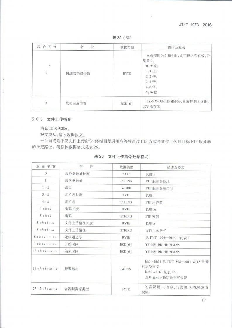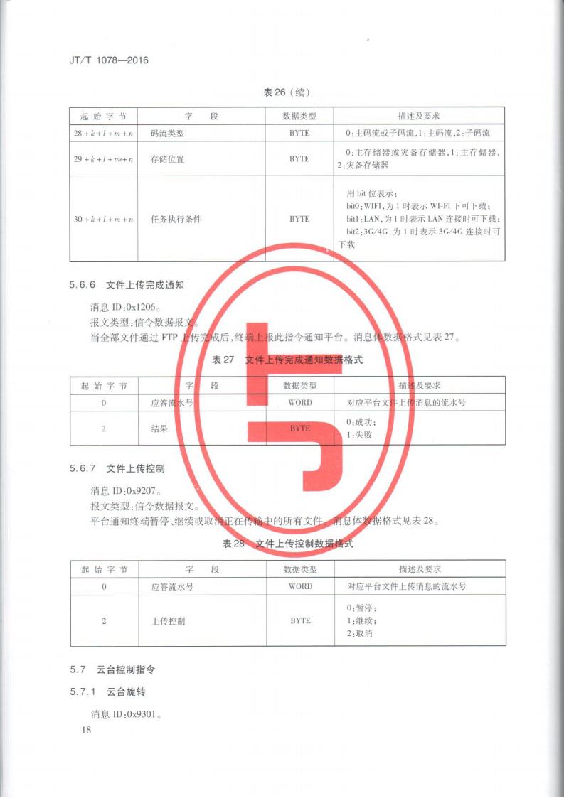 JTT 1078-2016 道路運輸車輛衛星定位系統車載視頻(通信協議)