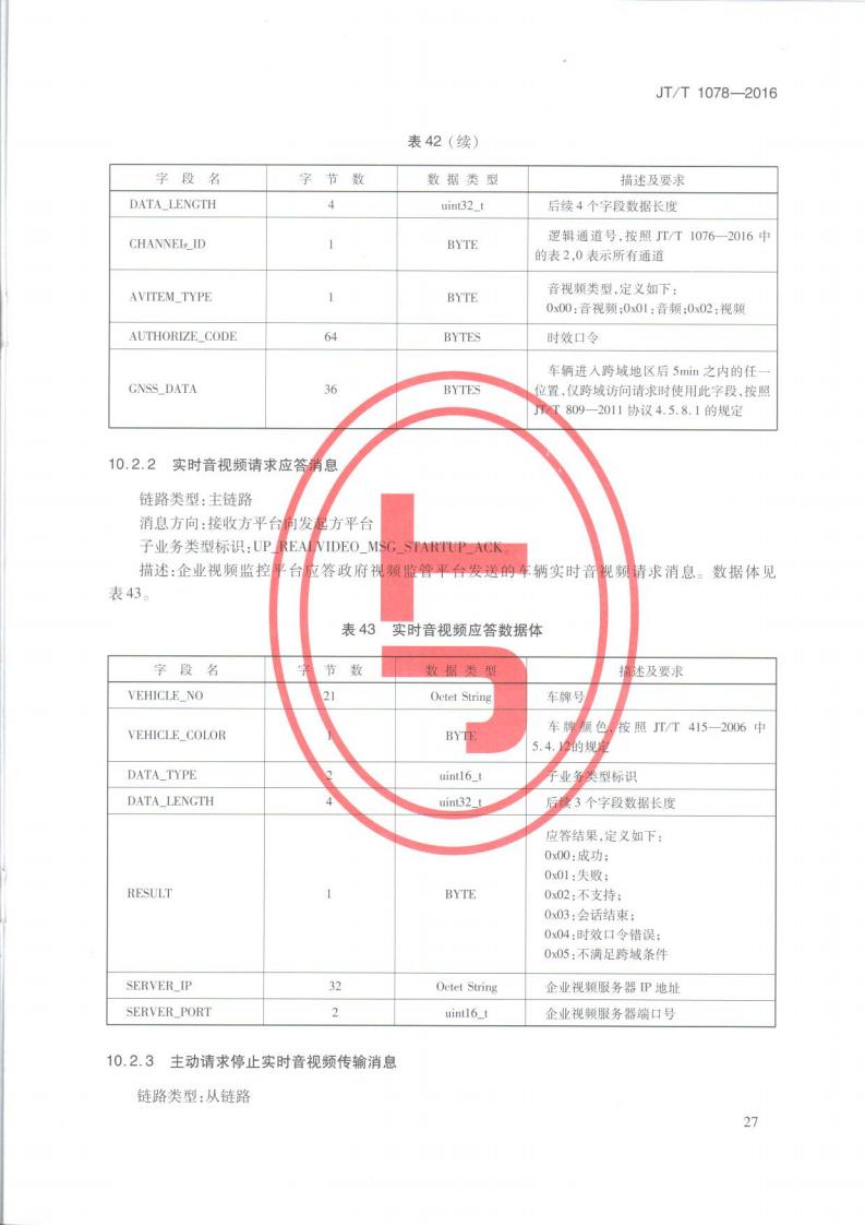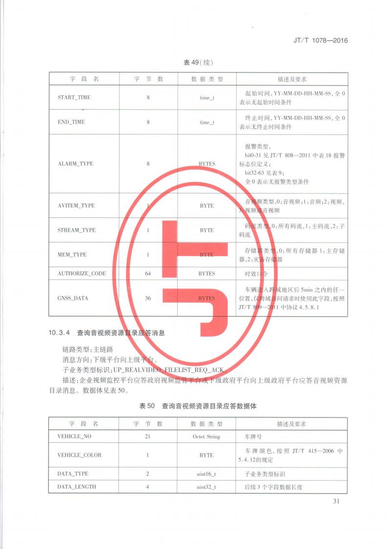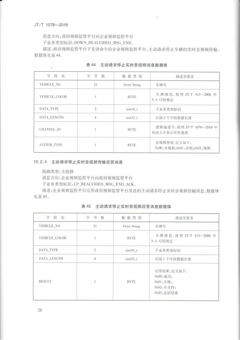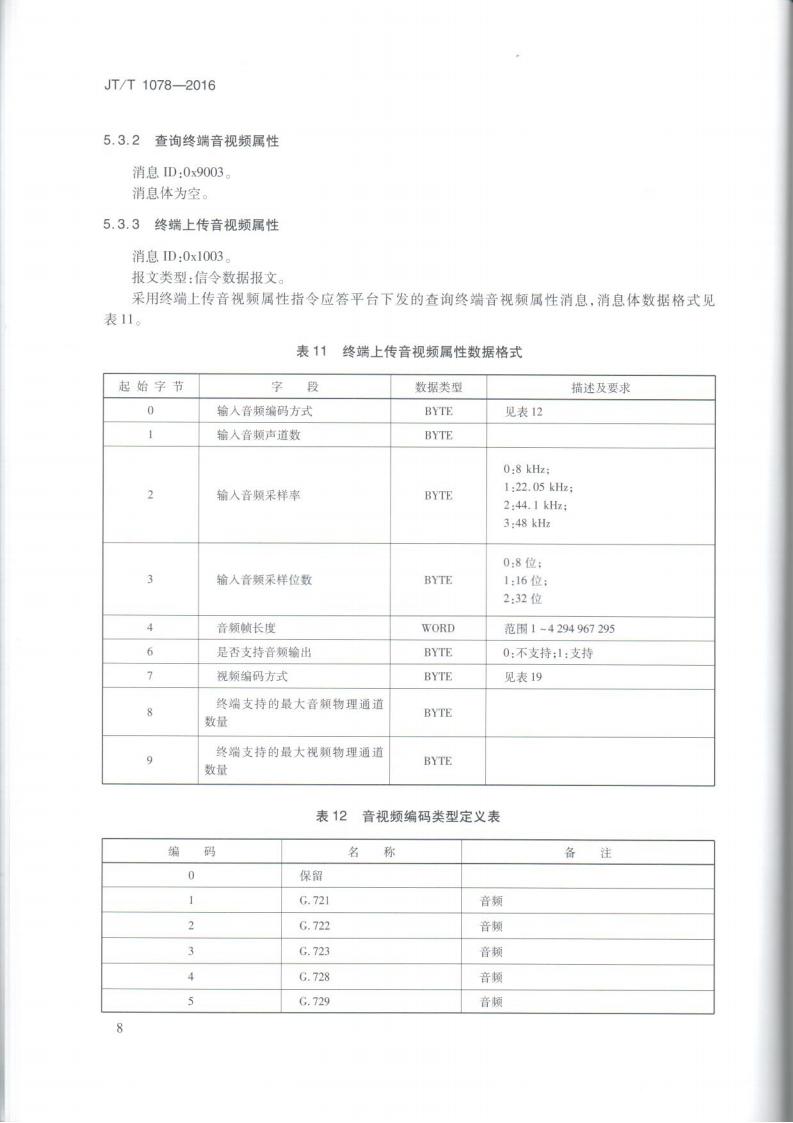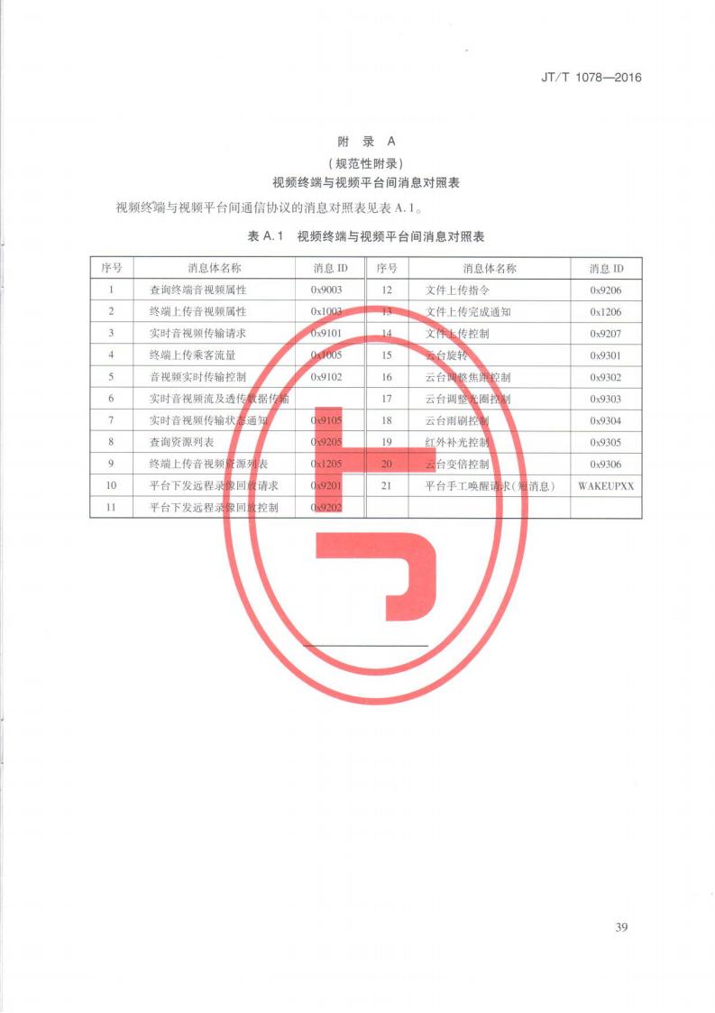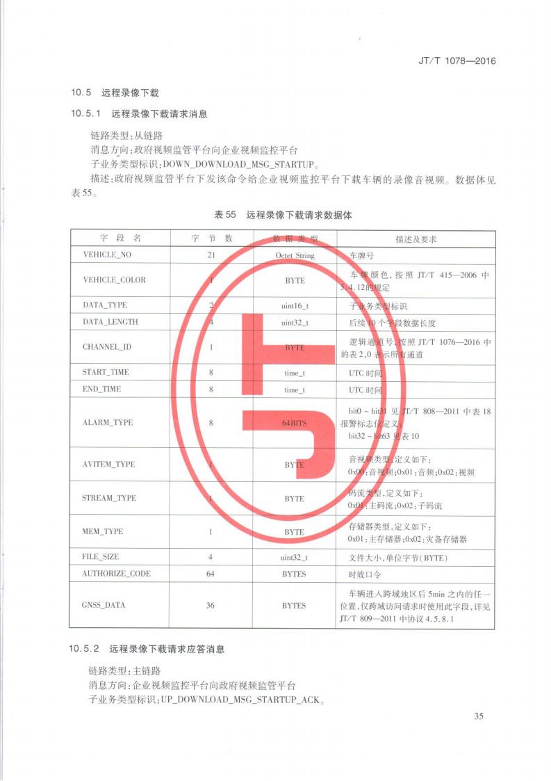 JTT 1078-2016 道路運輸車輛衛星定位系統車載視頻(通信協議)