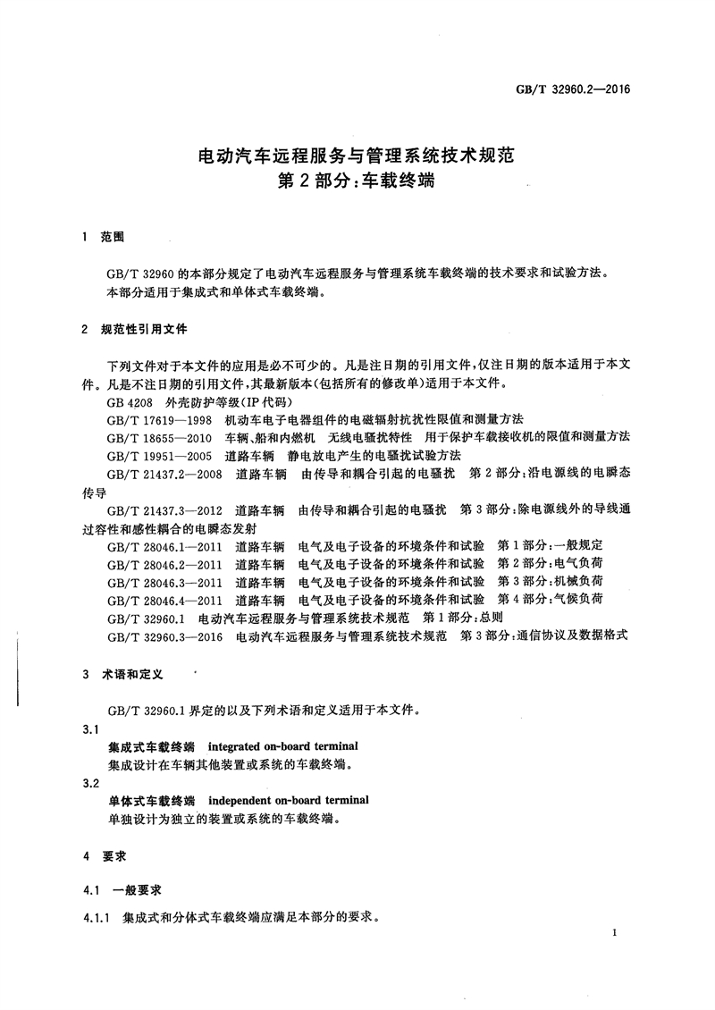 GBT32960.2-2016 電動汽車遠程服務與管理系統技術規范(第二部分:車載終端)