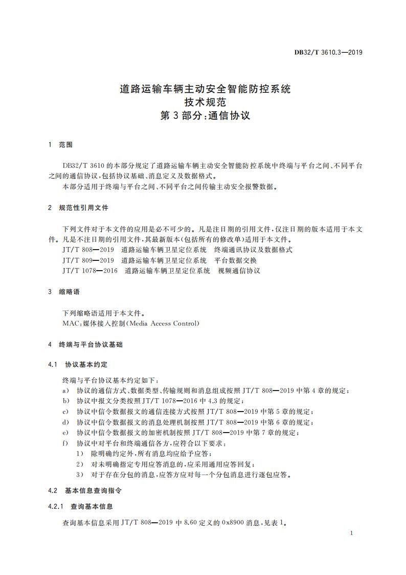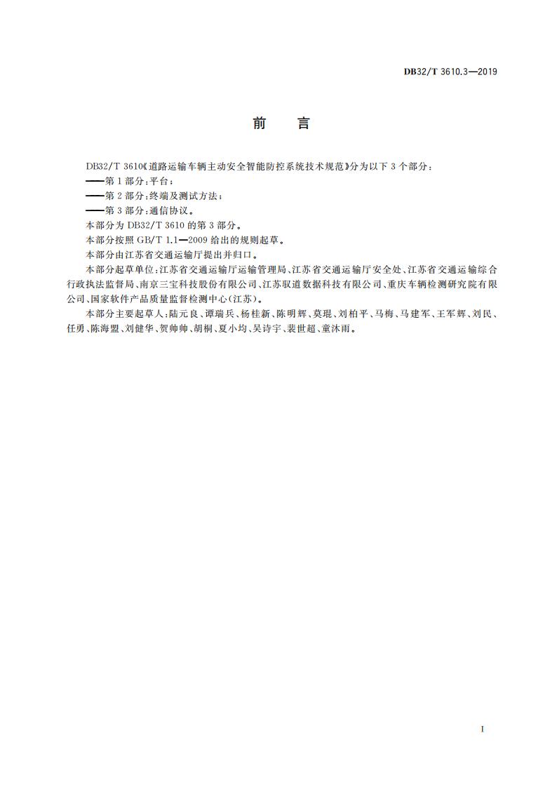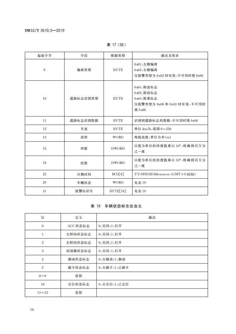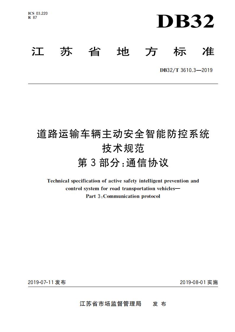 江蘇省 DB32T3610.3-2019 道路運輸車輛主動安全智能防控系統(通信協議規范)