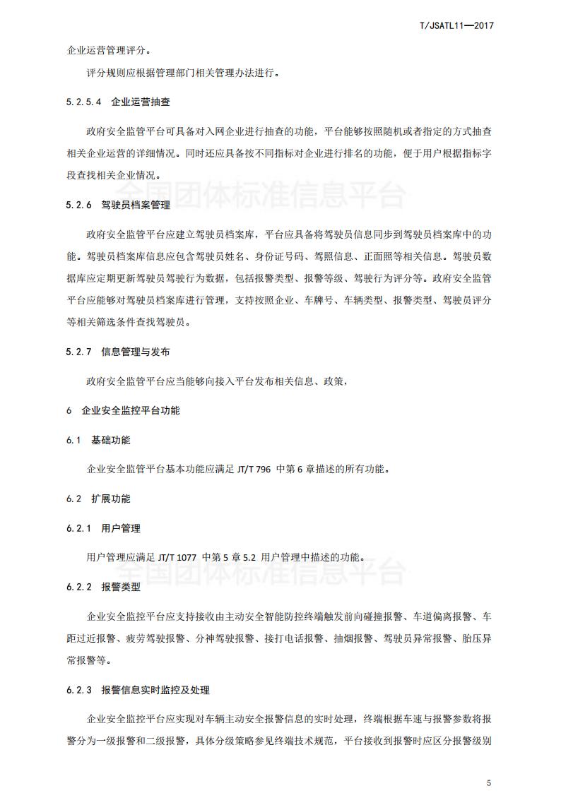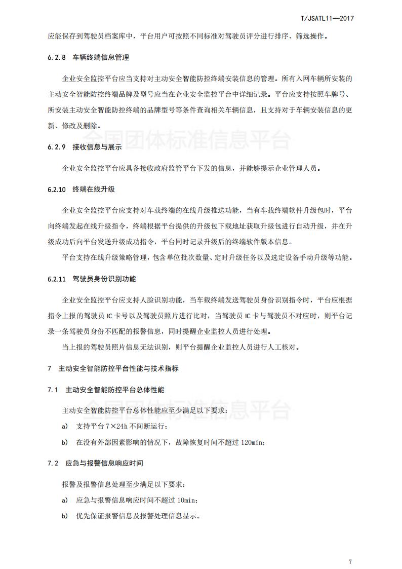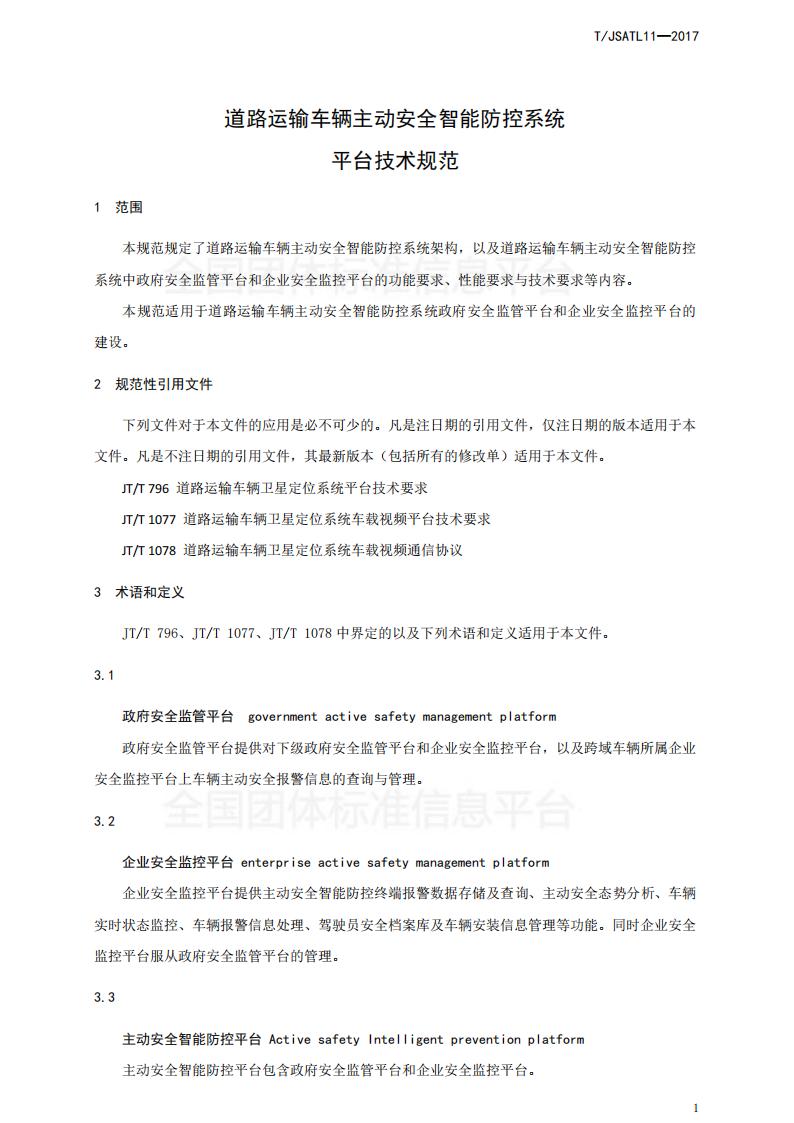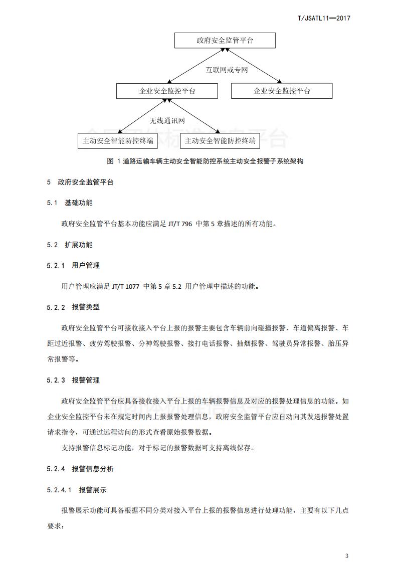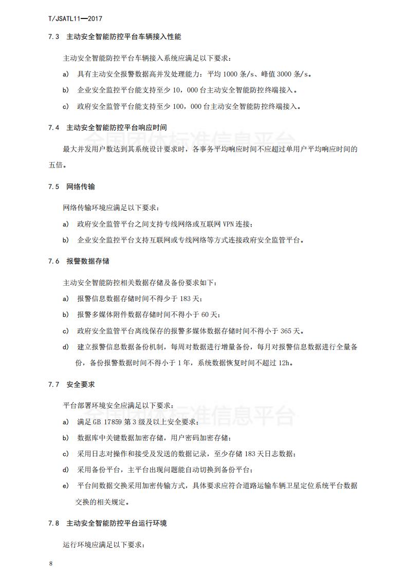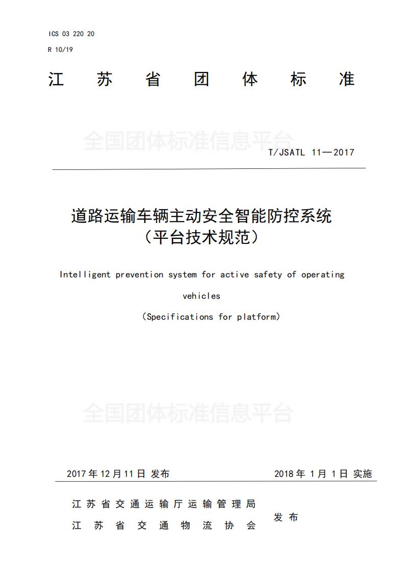 江蘇省 TJSATL 11-2017 道路運輸車輛主動安全智能防控系統(tǒng)(平臺技術(shù)規(guī)范)