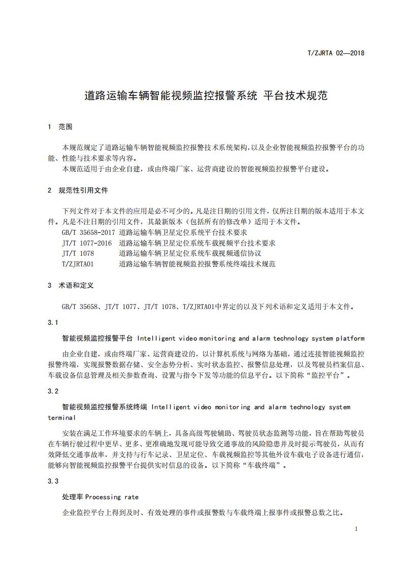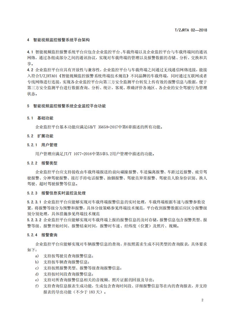 浙江省 TZJRTA 02-2018 道路運(yùn)輸車輛主動(dòng)安全智能防控系統(tǒng)(平臺(tái)技術(shù)規(guī)范)