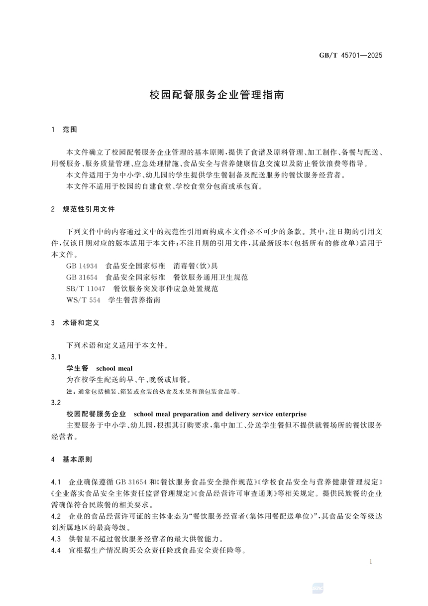 最新<<校園配餐服務(wù)企業(yè)管理指南>>GB/T45071-2025