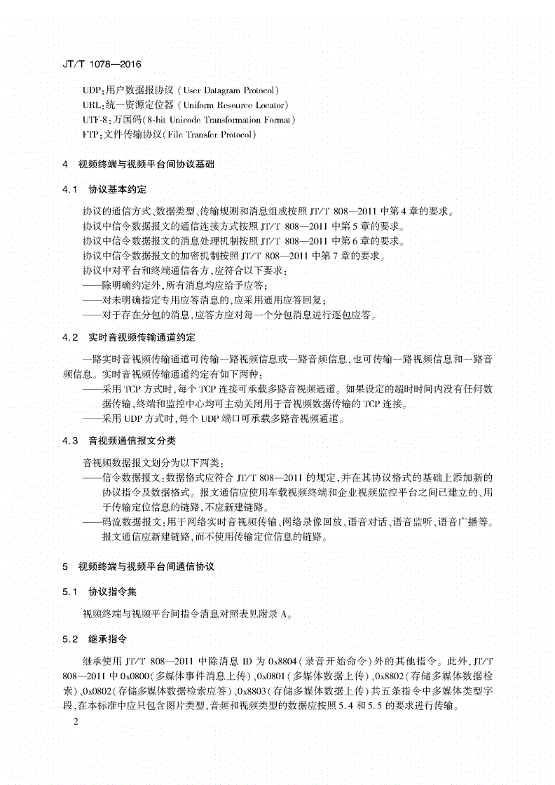 中華人民共和國交通運輸行業標準JT/T1078-2016道路運輸車輛衛星定位系統視頻通信協議2