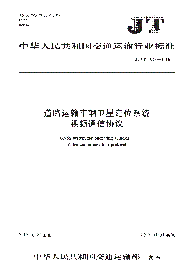 中華人民共和國交通運輸行業標準JT/T1078-2016道路運輸車輛衛星定位系統視頻通信協議3